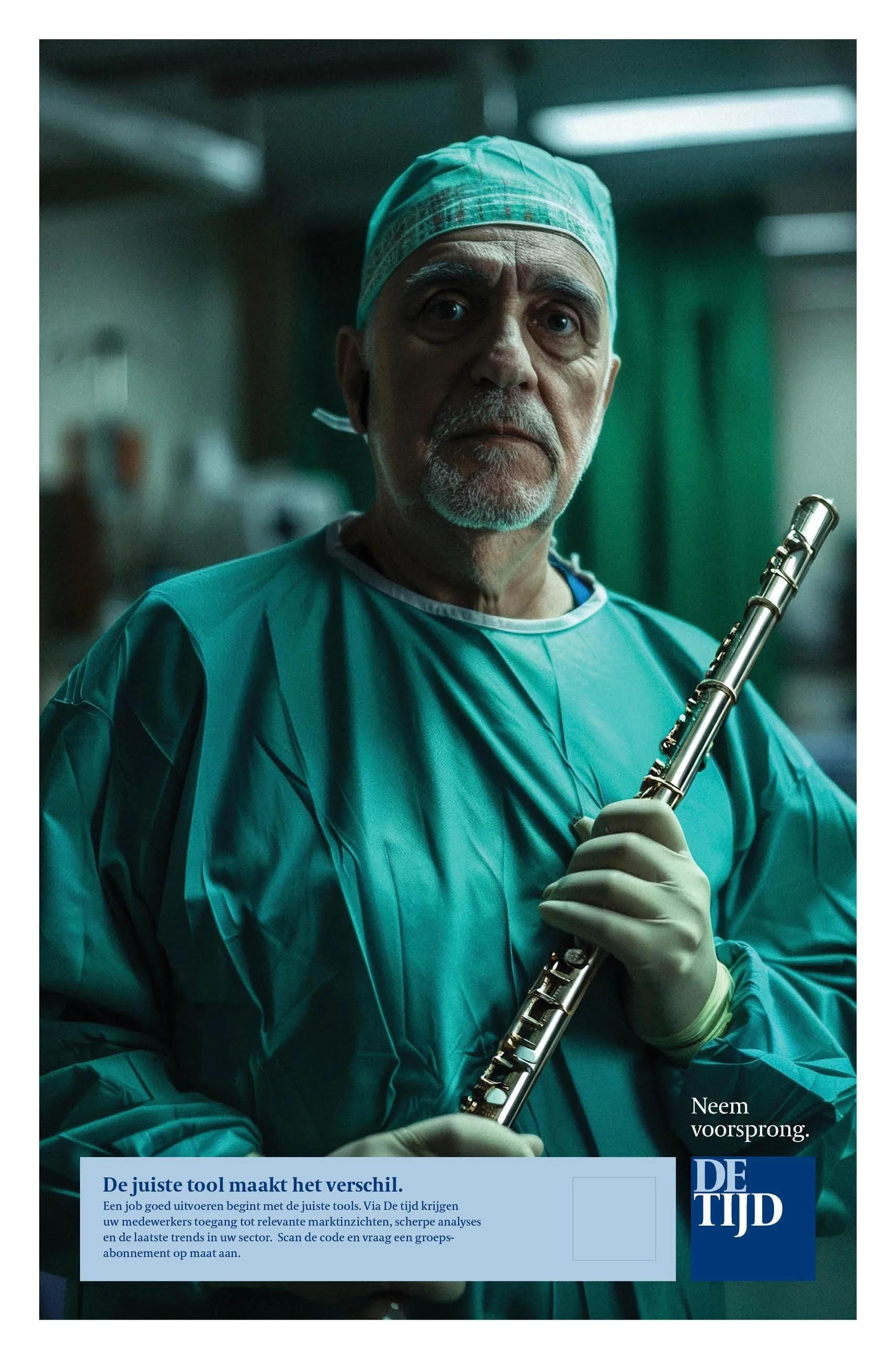 De Tijd vroeg ons om middelgrote tot grote bedrijven te overtuigen om een groepsabonnement te nemen. Waarom? Omdat – in tegenstelling tot de absurde attributen in deze campagne – deze krant een geweldige tool is die werknemers helpt om hun werk nog beter te doen.